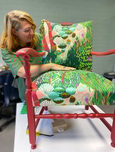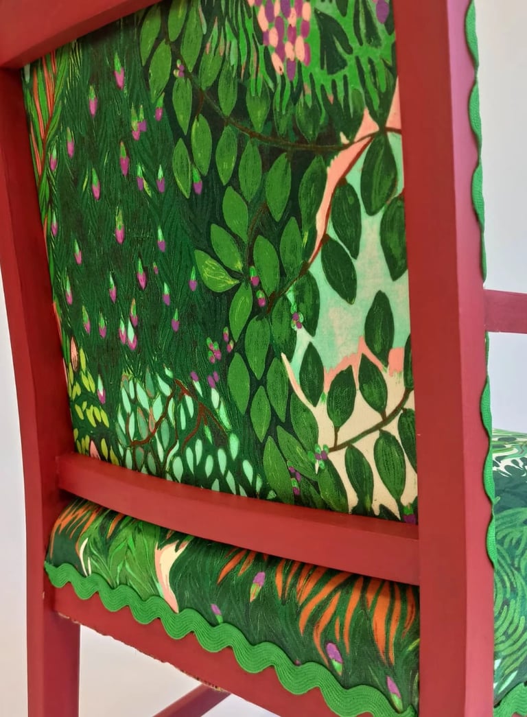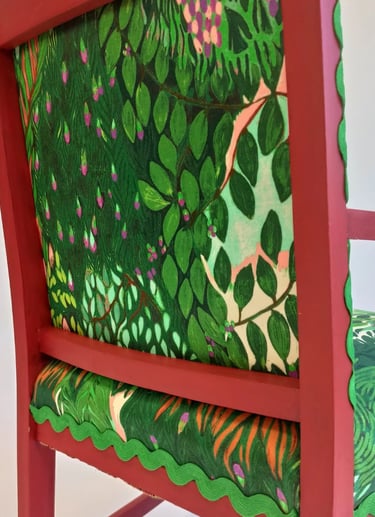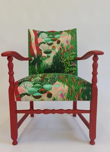 A chair that commands attention and tells a story of rebirth. Ready for adoption for those who believe in magic and timeless charm.